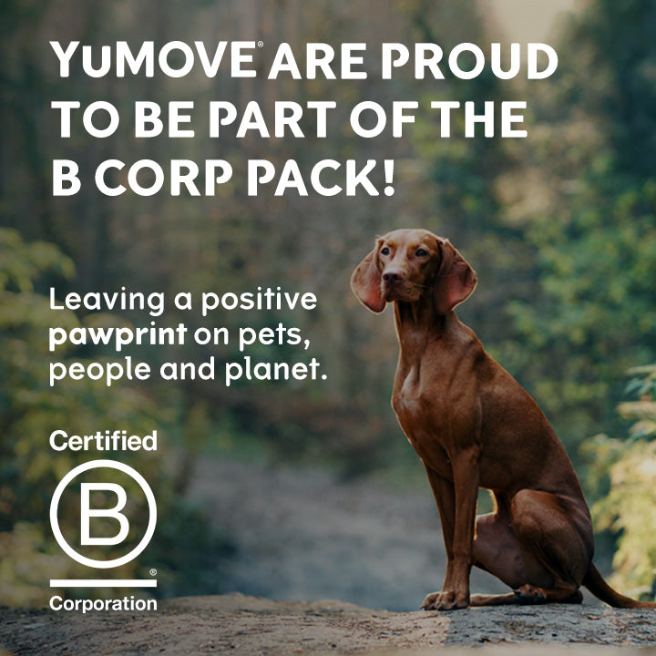 We’re very proud to announce that YuMOVE has achieved B Corp status, joining a global movement transforming business, and committing to a rigorous, evidence-based system for assessing the ways in which we’re supporting pets, people, and the planet.