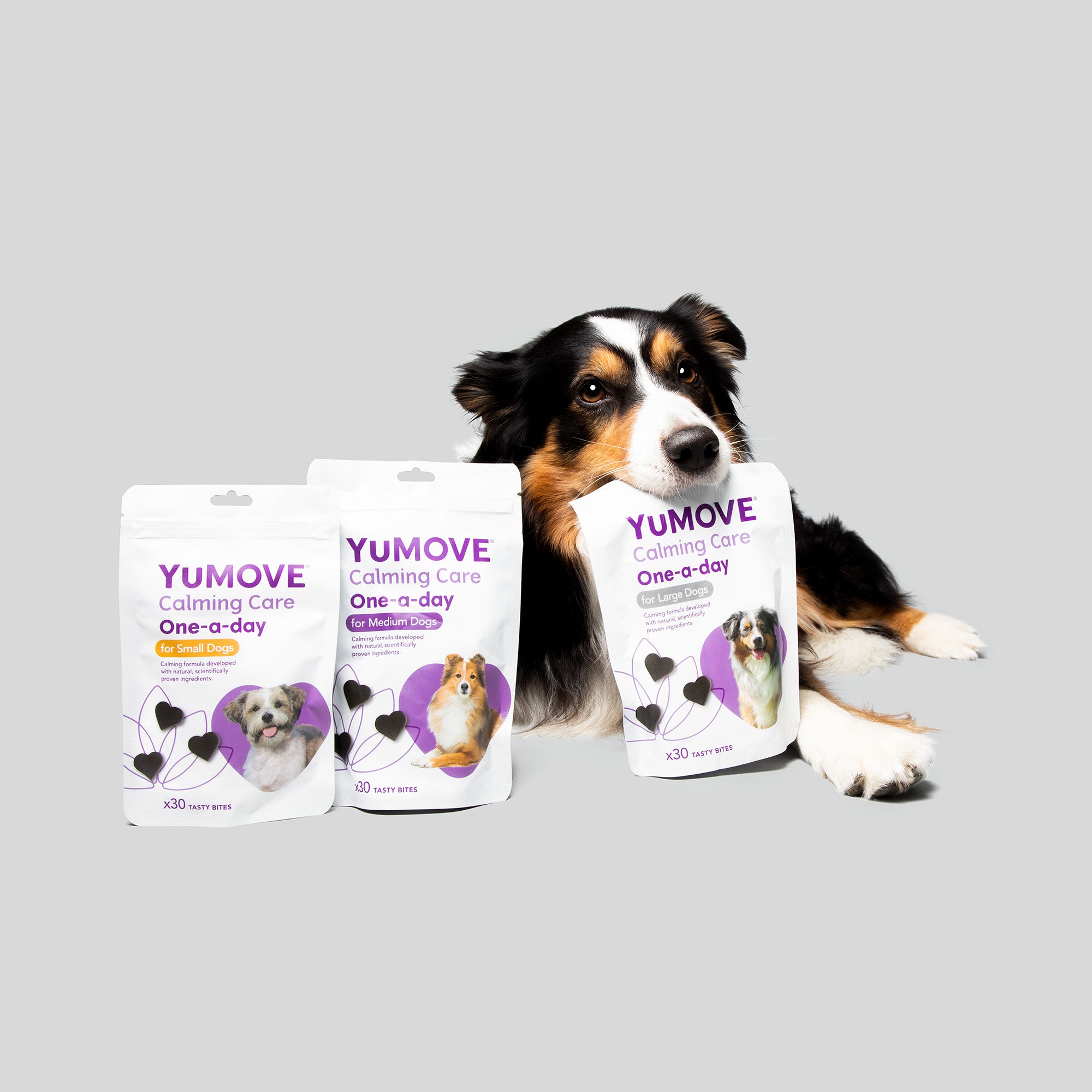 YuMOVE Calming Care One-a-day (sold separately for Small, Medium and Large Dogs) contains scientifically-backed ingredients, like L-Tryptophan, to help alleviate anxiety and support calm behaviour. Use long-term for dogs who feel anxious in day-to-day life, or short-term use for those fearful towards specific intermittent triggers.